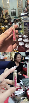 - Arjarn Natt magically made in ancient Khmer magic way because this is using concentrated oil from Phee Tai Thong Glom ( pregnant spirit oil) a women “Panee” corpse that died while 8th month pregnant stirred with Wanh Dork Thong (a charm flowering plant) and charm vines. In addition, Arjarn Natt wrote magical Yant around the bottle on the shroud (corpse cloth) and tied with funeral thread by himself.